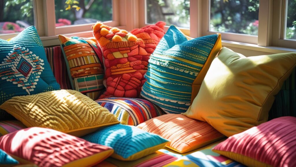 Throw cushions in various shapes and textures can instantly refresh your bed or a cozy chair. Play with velvet, silk, and cotton fabrics for contrast.